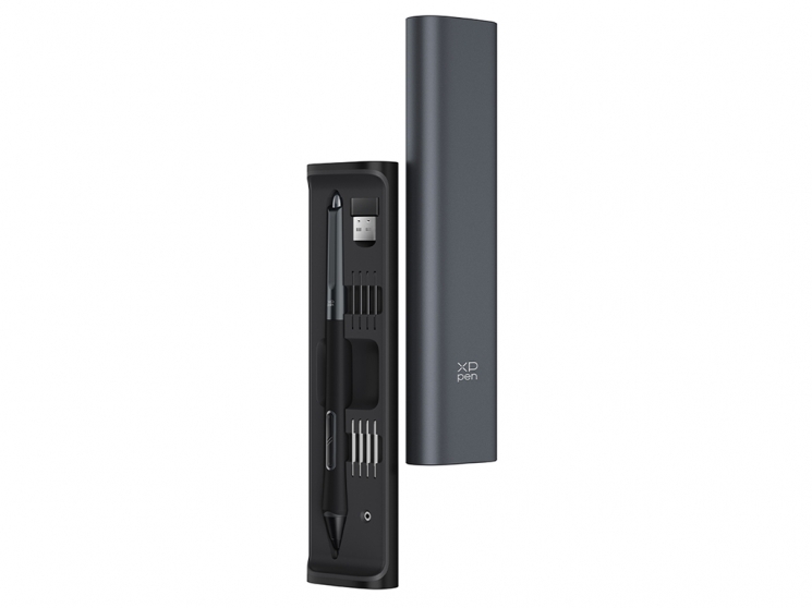 В комплекте с дисплеем идёт перо X3 Pro с интеллектуальным чипом, которое обладает 16384 уровнями нажатия, поддерживает наклон до 60° и мгновенно реагирует на движения благодаря высокой частоте отклика (≥200 RPS). Минимальное начальное усилие (всего 3 г) делает работу максимально естественной. Точность ±0,4 мм по центру экрана и высота считывания 10 мм обеспечивают стабильность и удобство рисования. В комлекте идет пылезащищенный футляр, предназначенный для хранения пера и других аксессуров. А также съемный зажим для пера, который можно установить в верхней части дисплея, дополнительно он вмещает до трех наконечников.